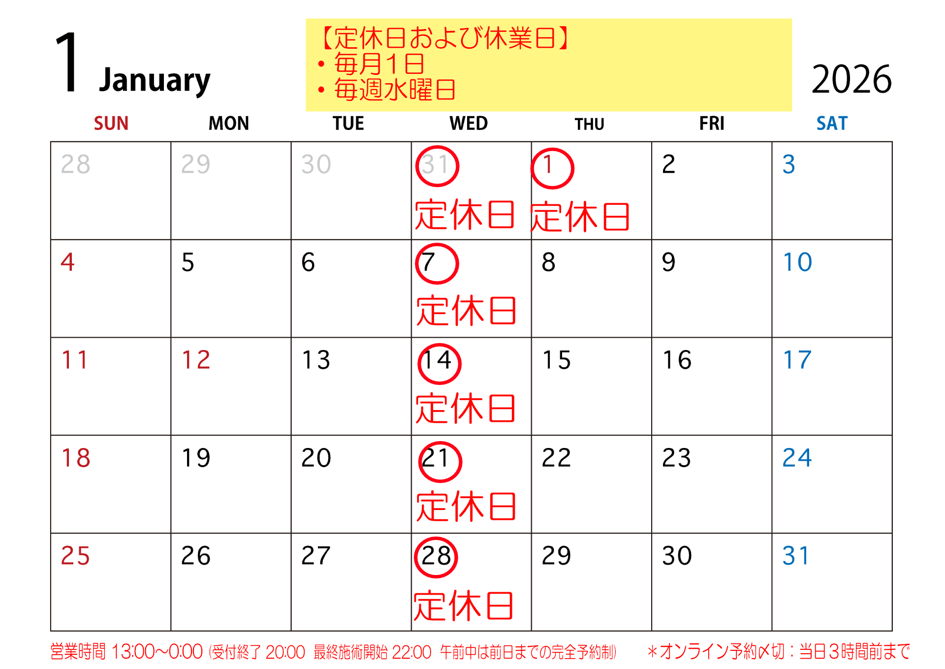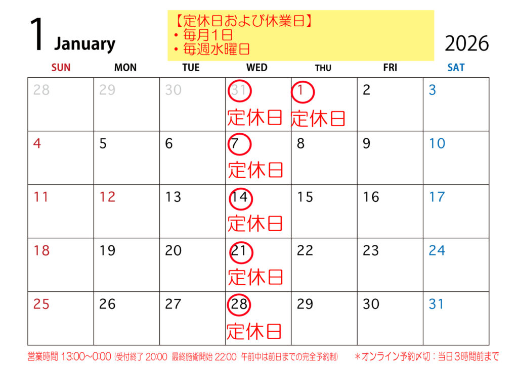 以下のご希望は当方では対応を致しかねます。念の為ご確認の上、予約ページにお進み下さい。
