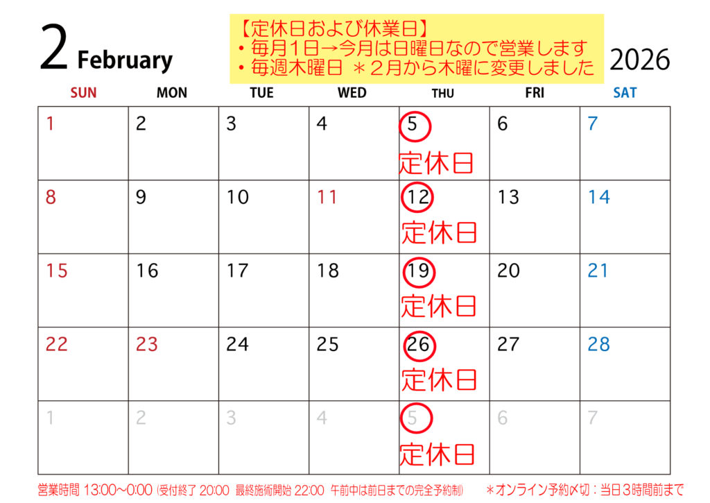 2月以降:毎月1日+毎週木曜日